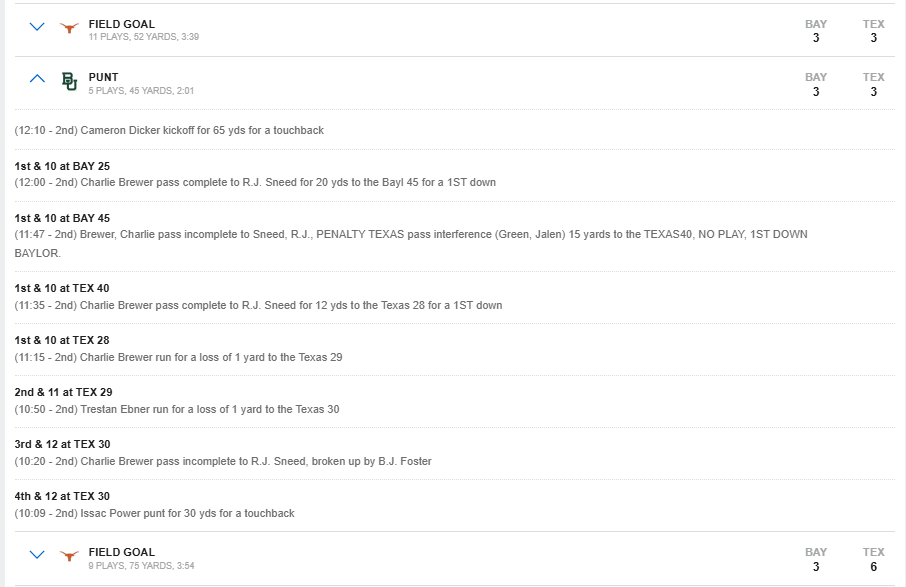 I was more disappointed this game with the defense. Not this season mind you, but this game. Thank goodness Baylor's OC went brain dead a few times and their QB was very inconsistent with his accuracy.