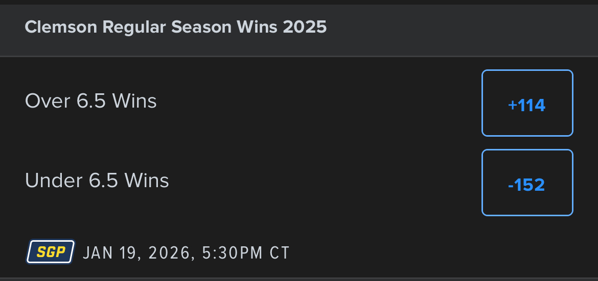 Clemson’s win total on FanDuel is now set at 7.5 so… apparently it does