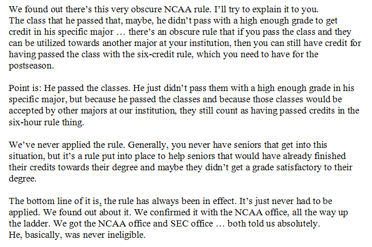 "There's this very obscure NCAA rule", no rule is obscure, a rule is a rule.
