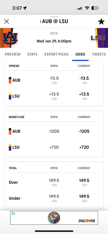 quote:We'll find out tomorrow. Kenpom would have them -23 on a neutral court. LSU hasn't gotten any line advantage playing in the PMAC. That's why the Vandy -1.5 line at the time was strange to a lot of us. Easily AU isn't getting all 23. but 18-20 wouldn't be surprising at all.