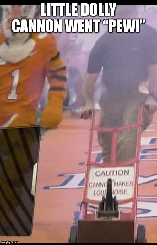 It took me a second to find it on the dolly. The sign with the warning was bigger than the cannon. shite was so mickey mouse