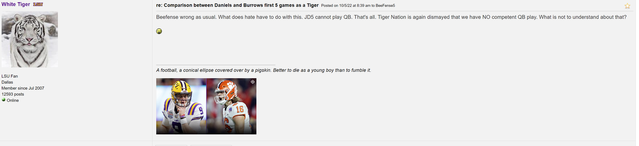 No one knows that so that argument is out the window. For anyone to say they know for certain what dainels would’ve done with the 2019 is a lie. ETA: one thing for certain is that we know what Joe Burrow did with the 2019 team and that’s go 15-0 AND win the national championship. Oh, and I do believe he also won the heisman trophy as well.