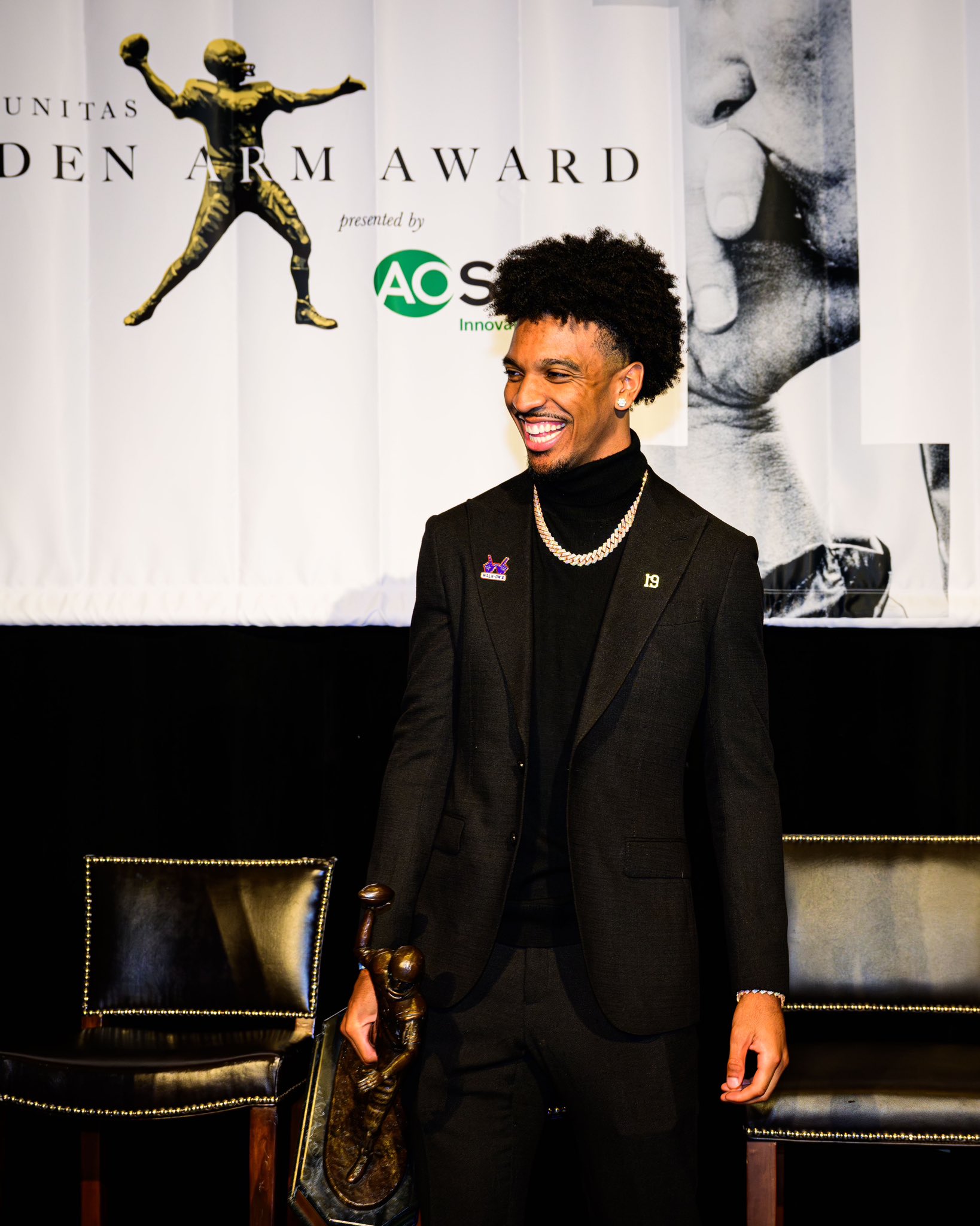 Great speech by Jayden. From the heart. He's so humble and sincere and real. He gave the glory to God. He also fittingly honored the great Johnny Unitas, whose legend lives for all time. I know he was my dad's hero.