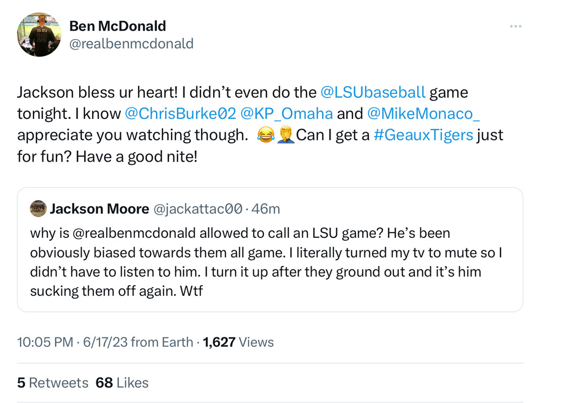 dude basically called Ben out for being biased towards LSU during the broadcast.