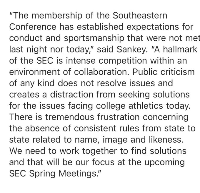 Why didn’t he issue this statement after Saban said it? Why was it only released after Fisher spoke? This sends the wrong message, like it’s okay for Saban to say stuff without reprisal, but if others speak up, they will be silenced by the league office.
