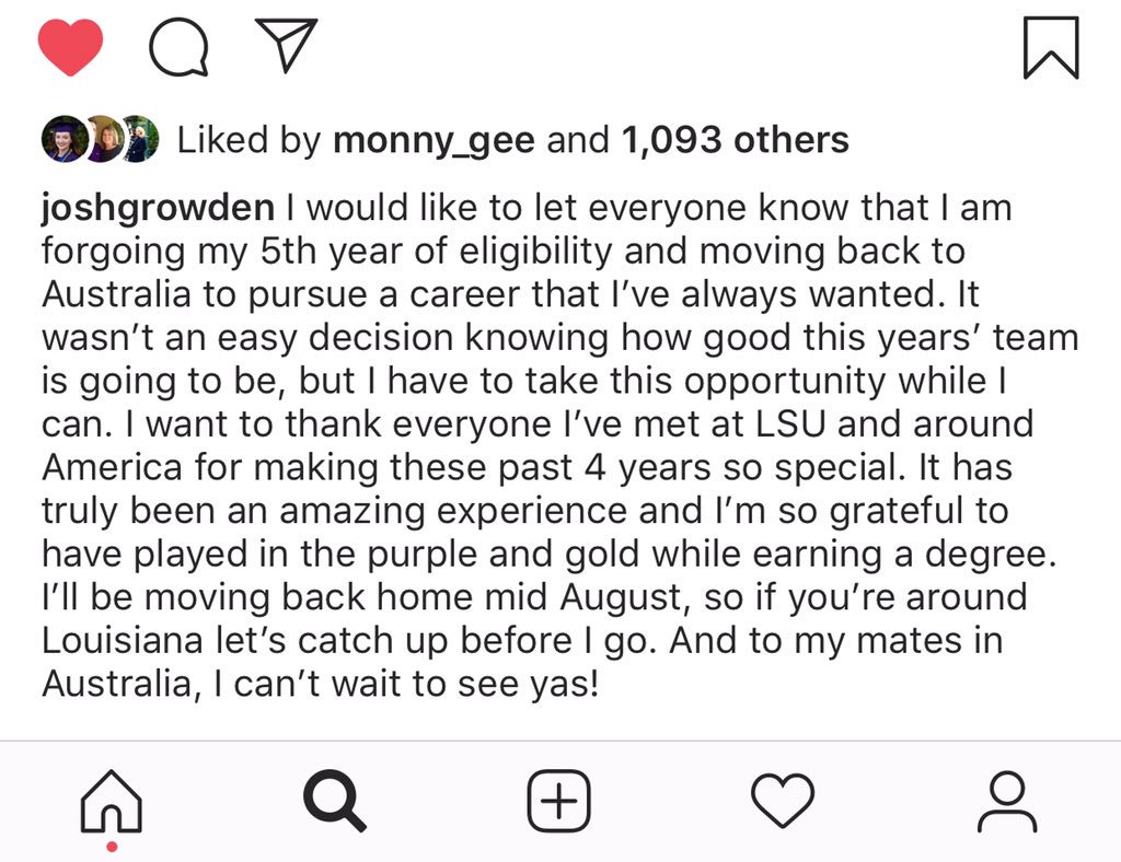 Growden posted on Instagram that he’s heading back to Australia in August and forgoing his 5th year of eligibility. Not sure what’s up with the transfer portal
