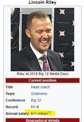 Oklahoma pays him extremely well. I know he's gone 0-3 in his CFP appearances but I haven't heard anyone up there wanting him gone.