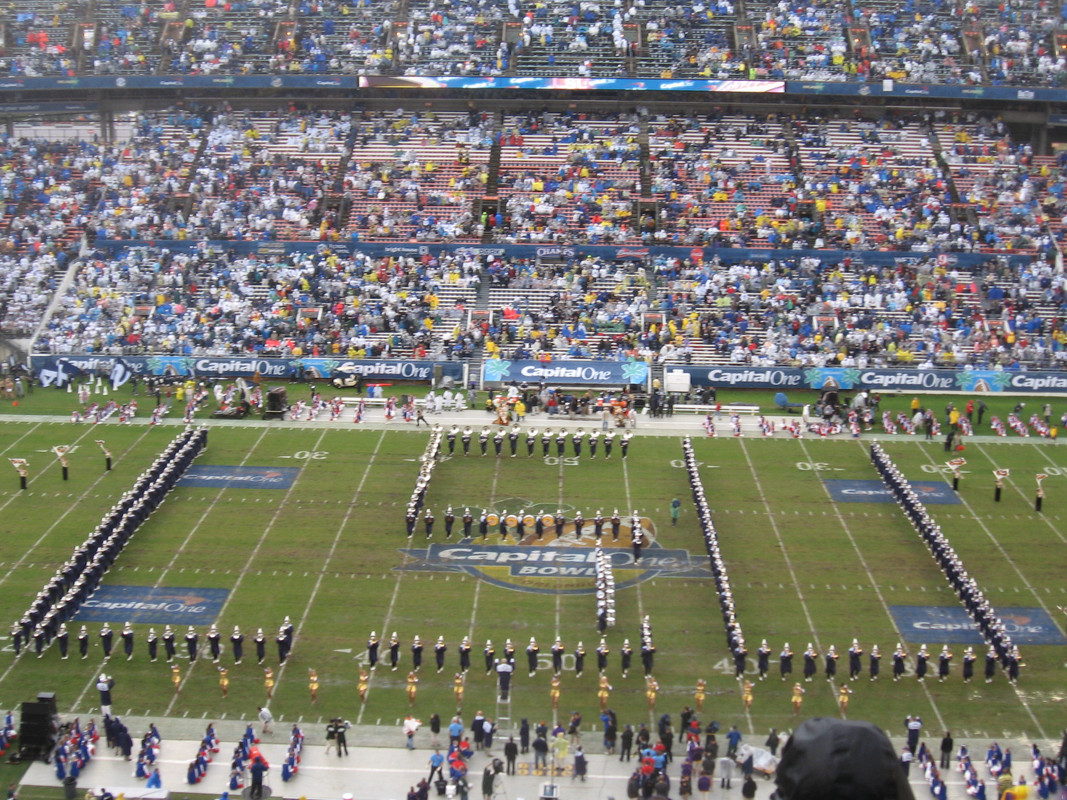 The field got worse after halftime because they let both marching bands march up and down all over it after the monsoon. I couldnt believe they actually let them on the field it was bad already.