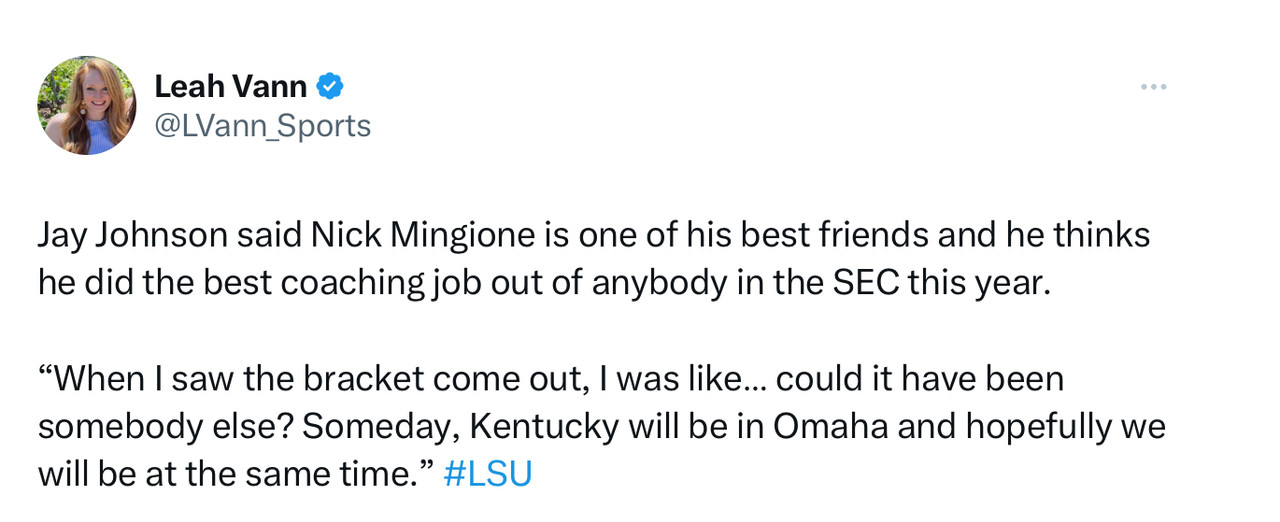 I remember reading something like this when LSU went to Omaha before. It may have been you posting it!