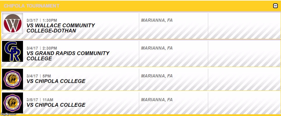 LSUE usually has a light schedule to start the season because they get teams from the north to travel down to them early. Their schedule picks up later when they play teams like Delgado, and this year Chipola.