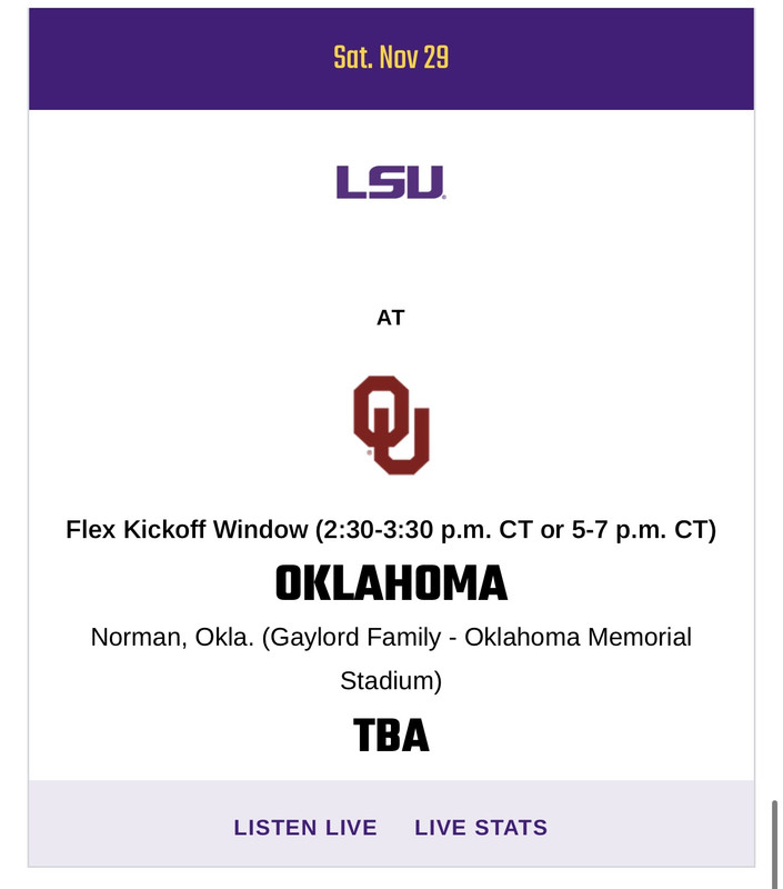 For example, OU is either afternoon or night kickoff. Arky was always 11am to noon.