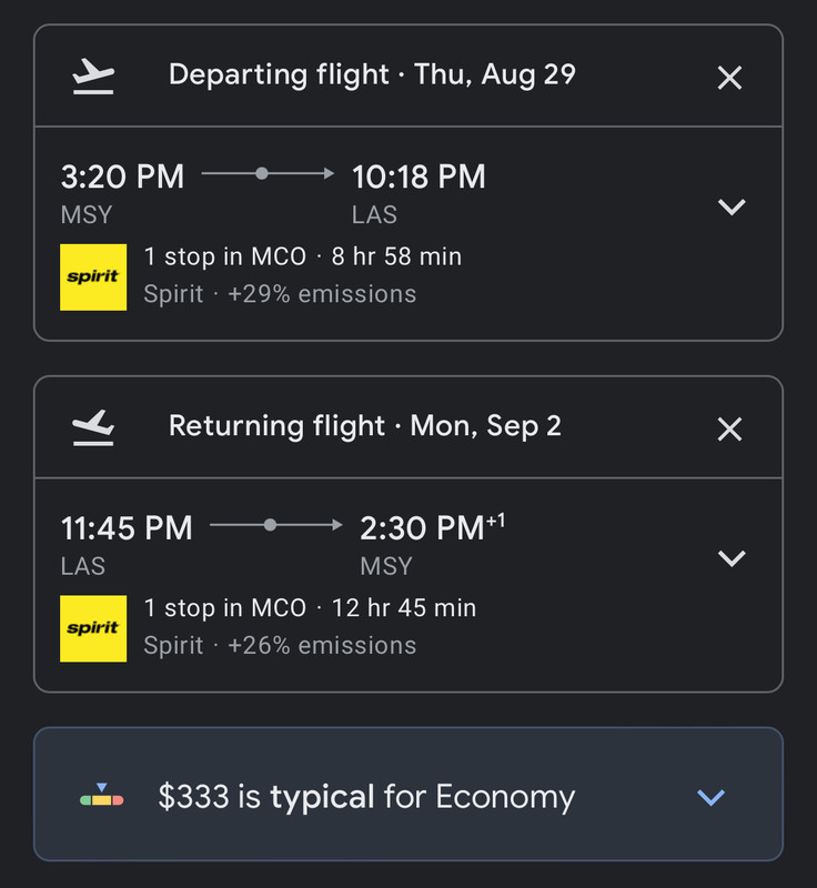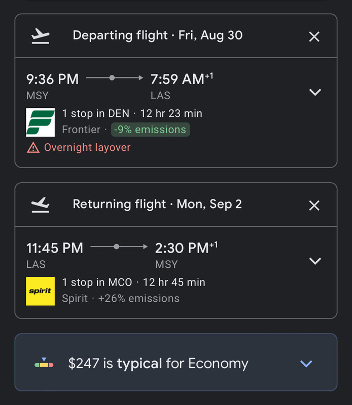 Most of the “cheapest options” being shown are frontier, spirit, or has flights with overnight stops.