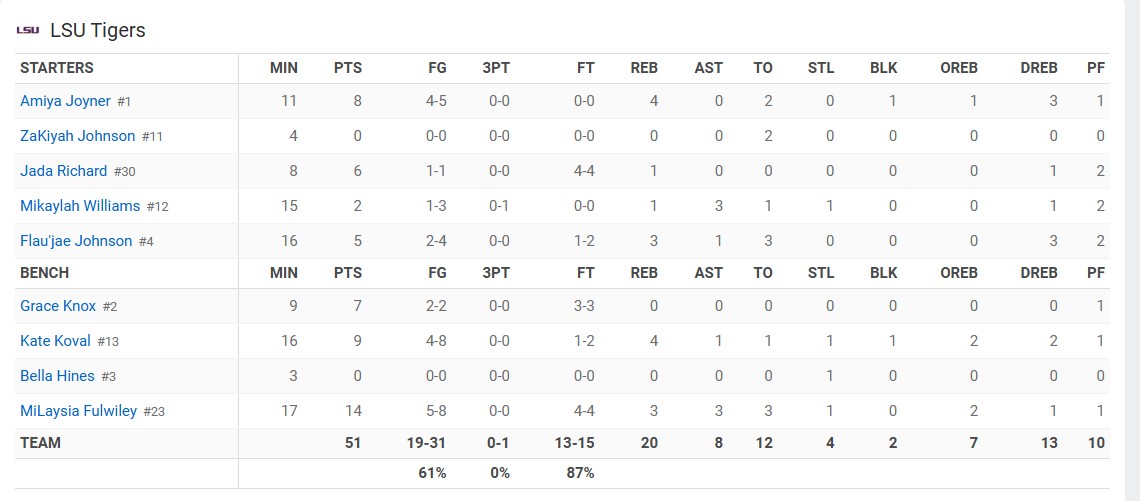 LSU just has too many great players for Duke. We come at them in waves. Deep bench, fast pace. Wearing them out.