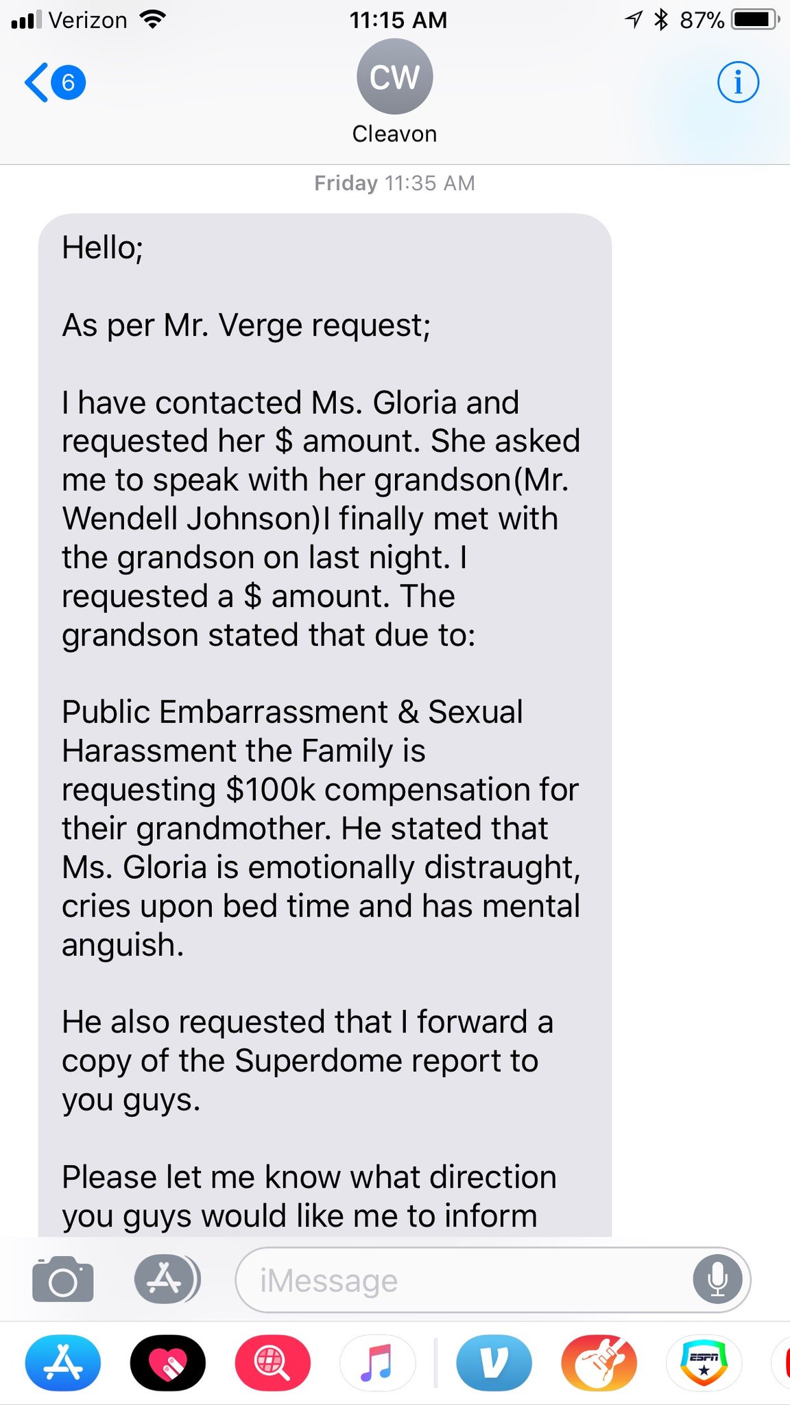 re: Man on behalf of Gloria Scott, asked LSU for money in Guice Superdome incident