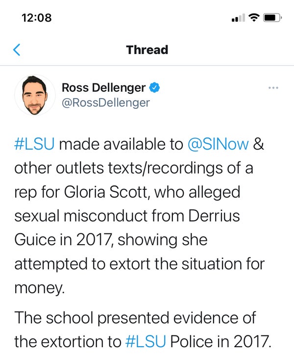 Of all the things alleged against Guice, the Superdome incident is the least worrisome/news-worthy IMO.