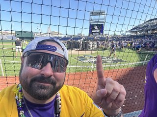 That’s me! I was outside the stadium watching the team take pictures in front of the Warren Morris statue. Monster asked me for my jersey and I thought he was joking. He asked again and I asked if he was serious. He was dead serious. Easy decision. Monster gets what Monster wants, especially in Omaha after a natty. Hope I can give him another one next year too.