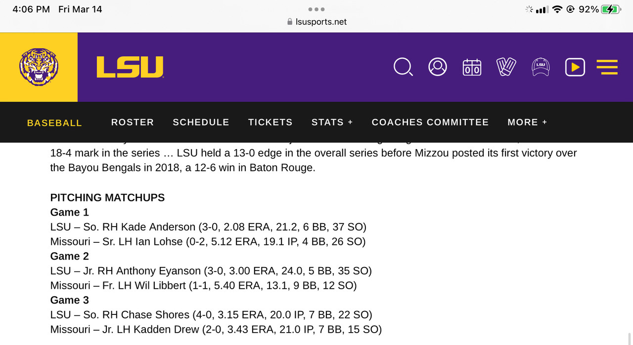LSU trying to get Mizzou to load the lineup with lefty batters.
