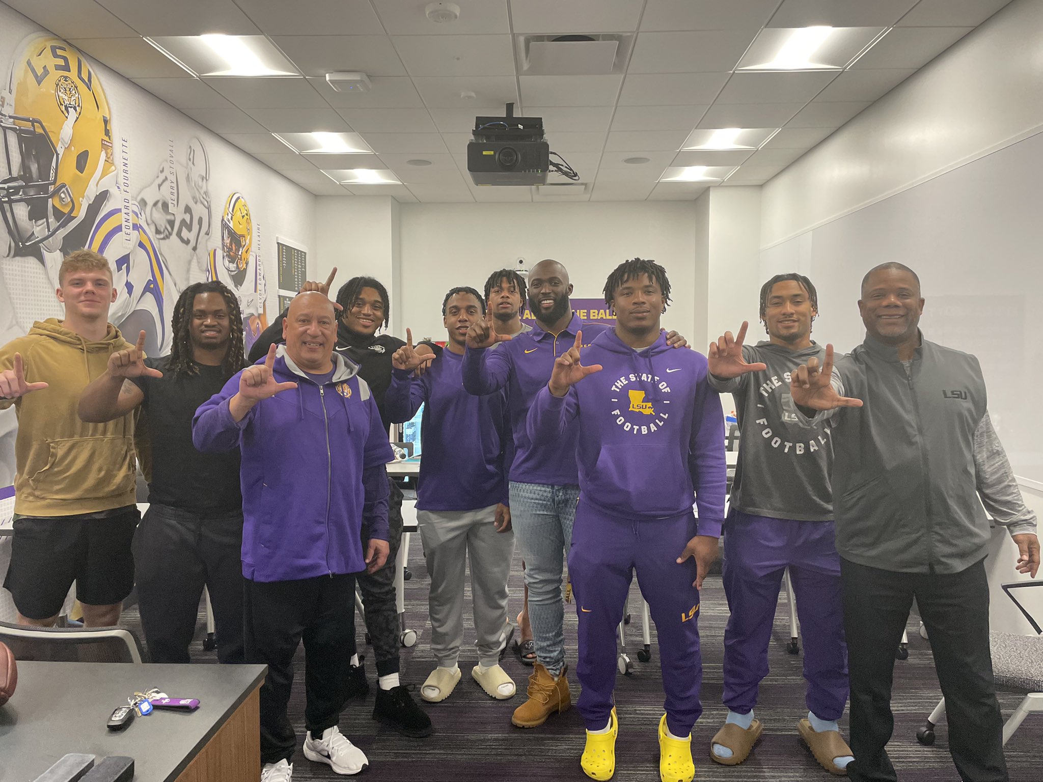 Great to have Leonard back at LSU talking to the backs!