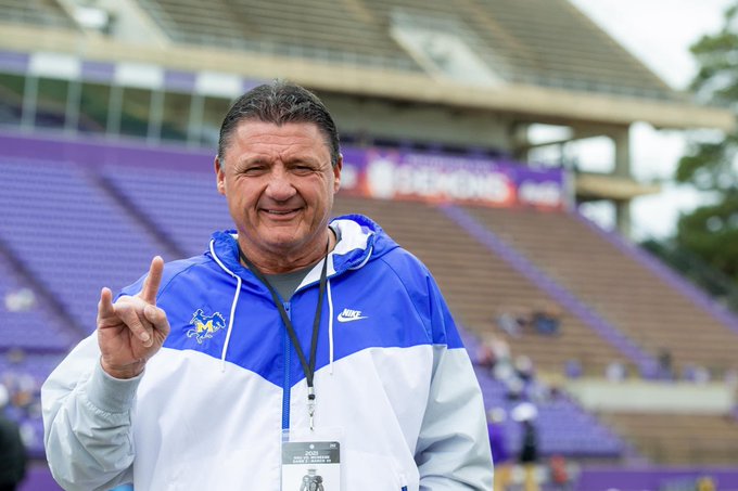 -Last weekend LSU coach wearing McNeese jacket throwing up the pitch forks.