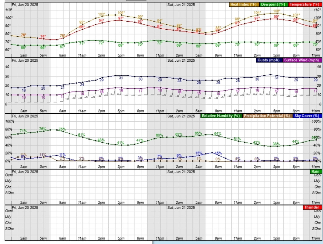 Saturday looks to be 101 with 30 mph wind. That will be interesting.