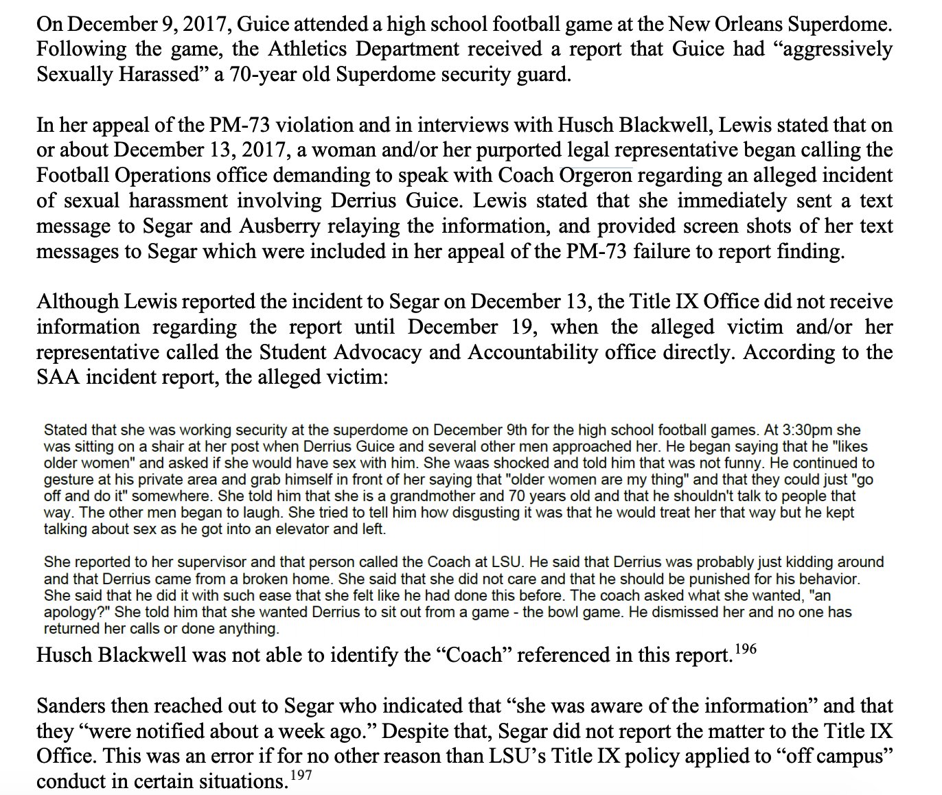 There is an ongoing investigation into this. LSU's own lawyers are taking about "dealing with Orgeron"
