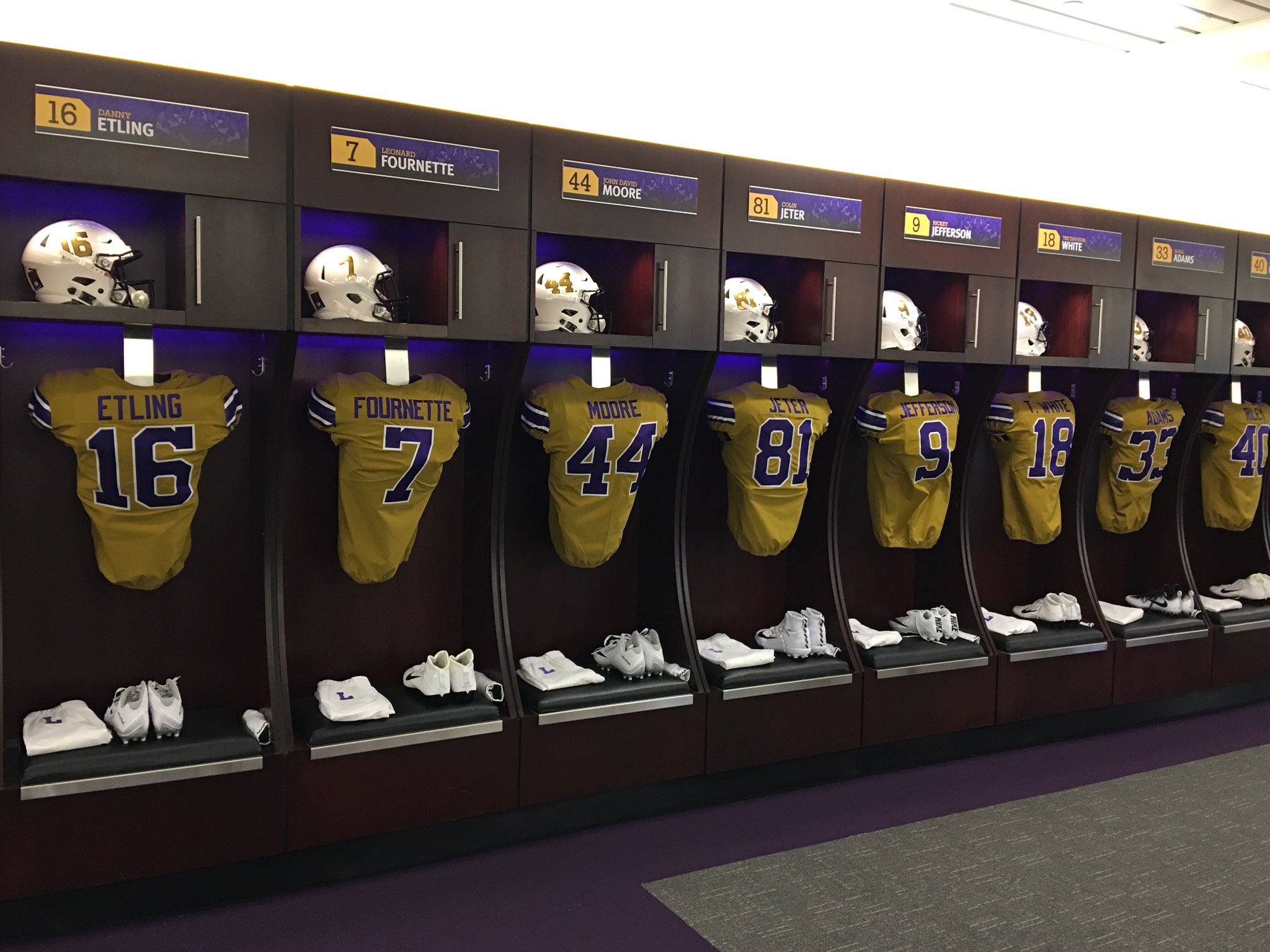 Don't know how to link it but on the @lsufbequipment Twitter page they show the locker room all set up for tomorrow.