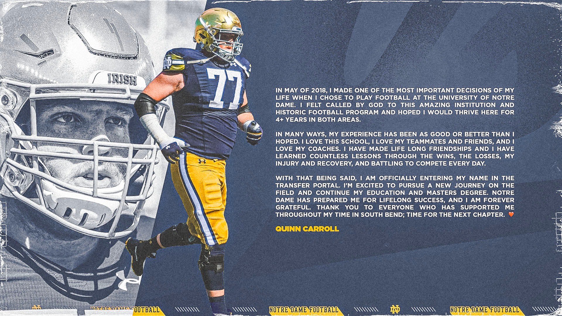 Quinn Carroll: Notre Dame OL enters the transfer portal.