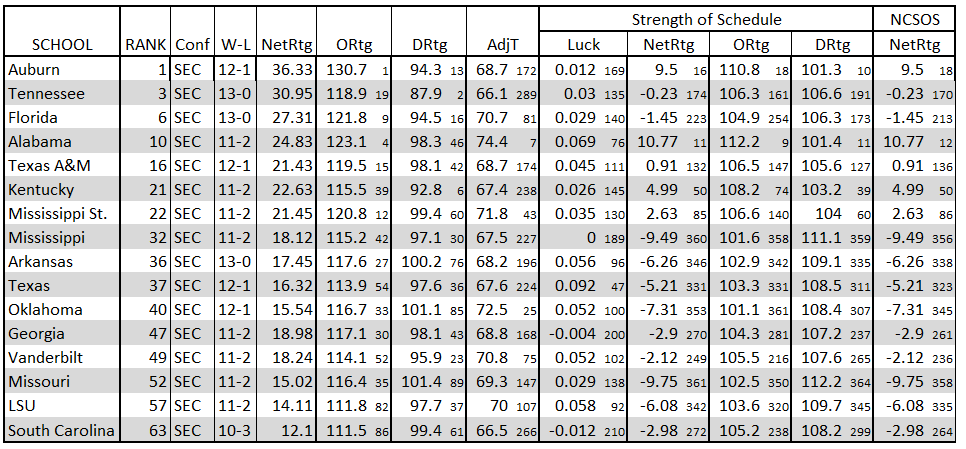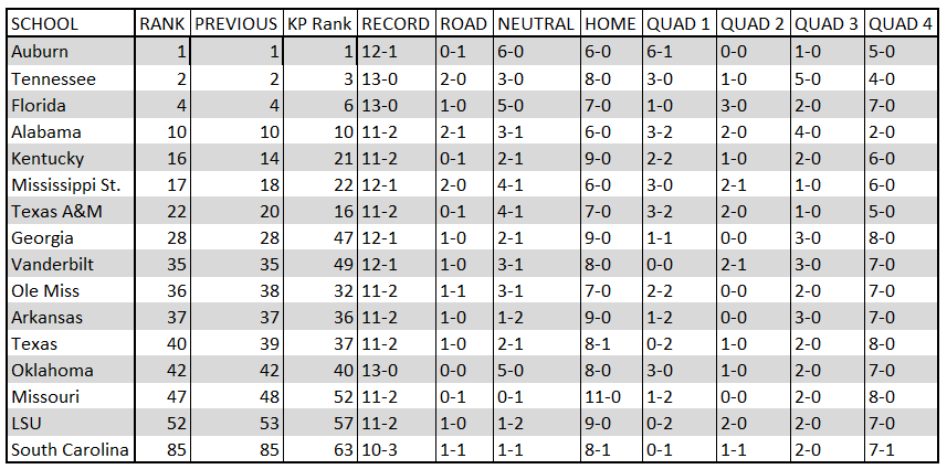 Here is a little something I am trying to keep up with this season with the SEC and NET Rankings. Sorted by NET