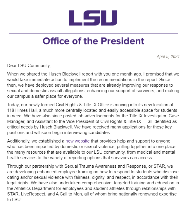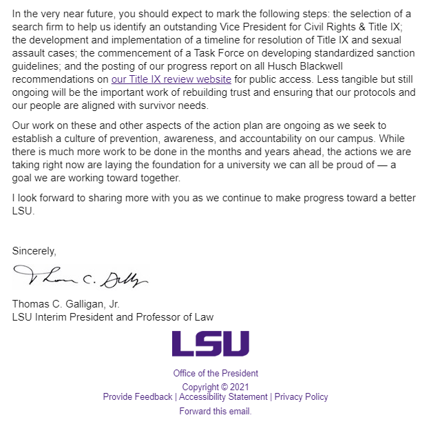 The good news is LSU is taking affirmative action to install systemic processes to make sure these kind of issues rarely happen and if they do happen are addressed swiftly: