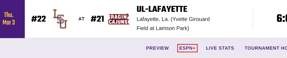 The full schedule for the LSU Invitational / ULL Crossover including games played in Lamson Park can be found here.