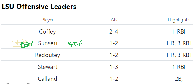 LSU also scored 14 runs today against superior talent. Two games against the #5 and #7 teams and scored 14 runs. Last weekend in six games LSU scored 21 runs total.