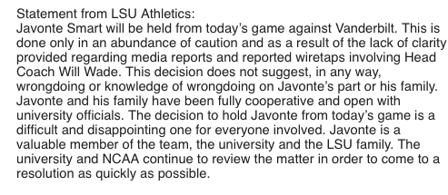 LSU Compliance is involved. We have no chance. Mr. Bahnsen is in charge. Mr. Do it Right unless it involves his wife getting paid to coach LSU's crappy women's golf team, umm, but she wasn't there for about 2 years. Read up on that shite show. It got so bad they had to move her to the TAF. Clean house at LSU. The entire administration needs to go. Start with F King and gut the athletic department. Remember when Emmert and Bill Jenkins came thru the athletic department with a blow torch.... Bye bye, Joe Dean and all his cronies. Need the same purge now.