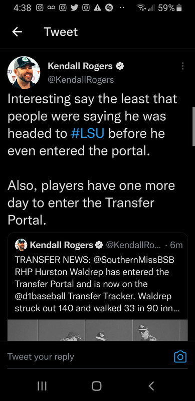 FWIW, the official LSU Baseball Recruiting handle (@LSUbsbrecruit) liked Kendall Rogers's post on Waldrep entering the portal.