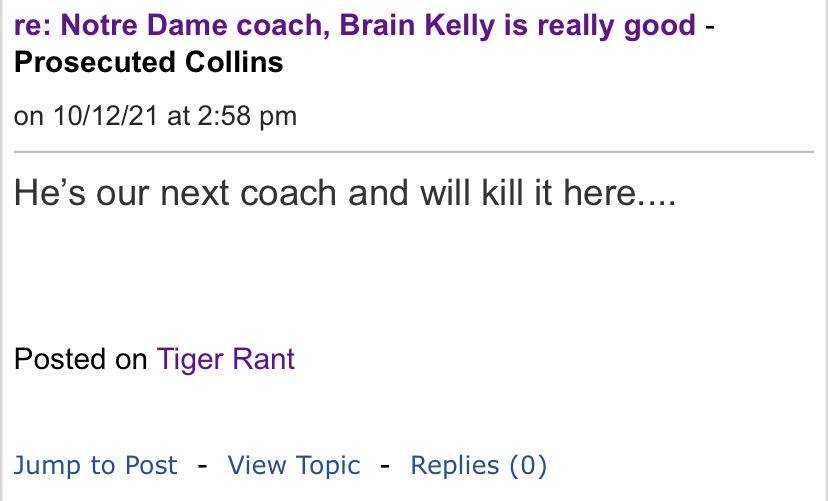 Someone on this board suggested Brian Kelly over a month ago. I wasn’t disrespectful, but I thought it was stupid to suggest he would leave notre dame. Turns out I was just stupid I guess.