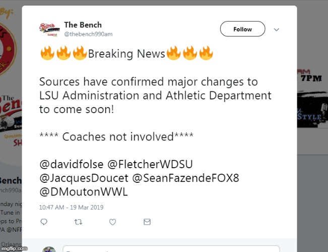Sources have confirmed major changes to LSU administration and athletic department to come soon