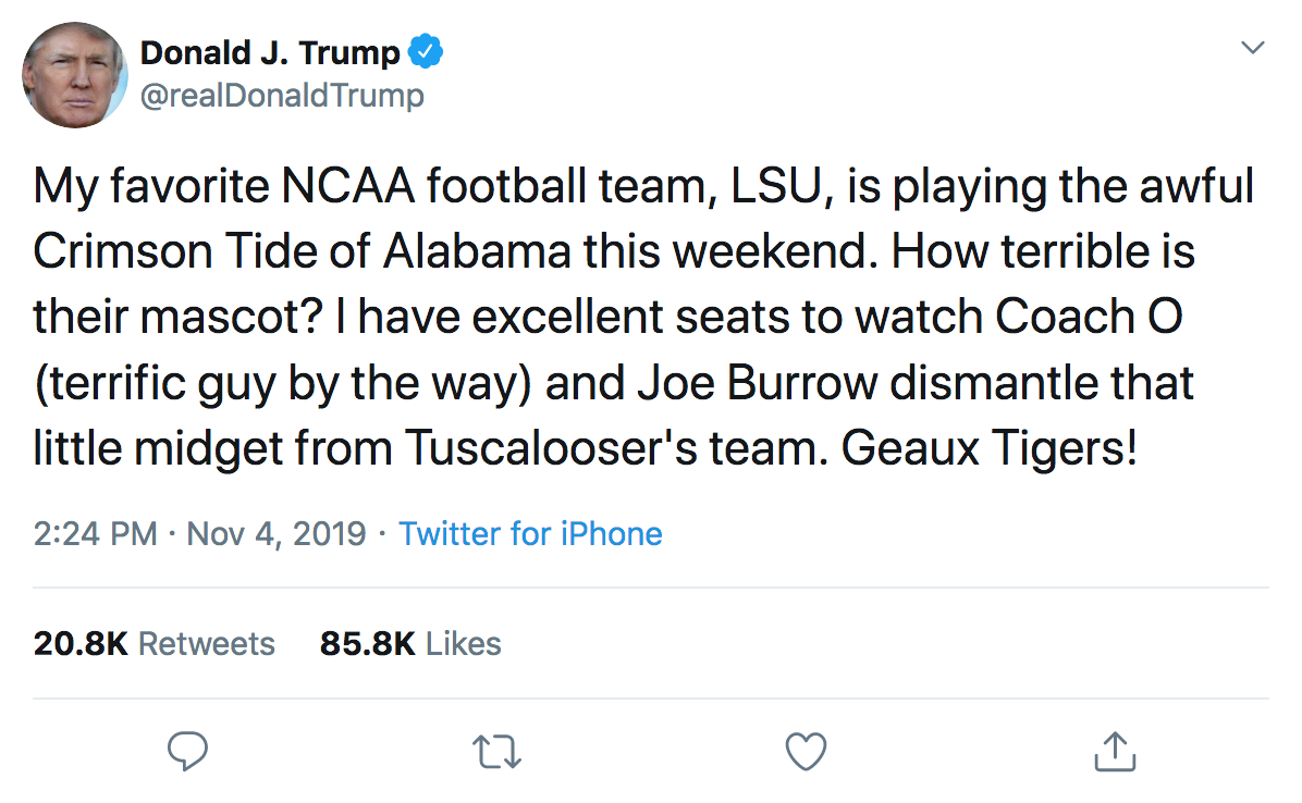 You think he gives af about college football? This dude has never cared about a cfb game in his life. This is literally 100% onlybecause he’s trying to find a friendly crowd that won’t boo him. I’m so embarrassed to be from the south right now.