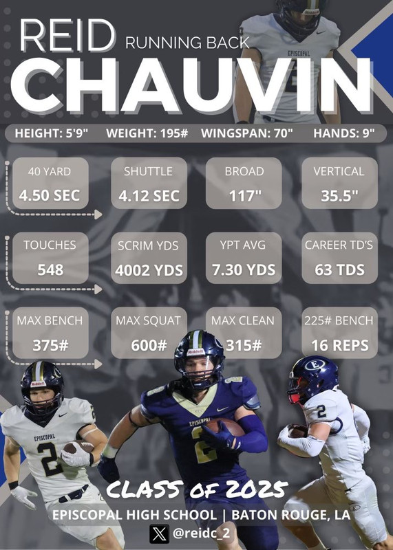 Brought this up here before. The more I read about and look at this kid Reid Chavin the more I believe he will get snaps at RB. He is built like a RB. Have a look at huus pic and measurables