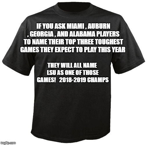 I know we have a tough schedule this year.. But .. I’ll bet a dollar to a dime that if you ask Miami , Auburn , Georgia , and Alabama players to name their top three toughest games they expect to play this year ...they will all name LSU as one of those games .. agree ?