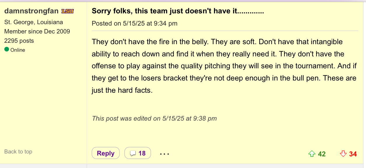 I love seeing LINOESC exposed. Tricked people here during basketball season by shitting on McMahon, but he’s not an LSU fan