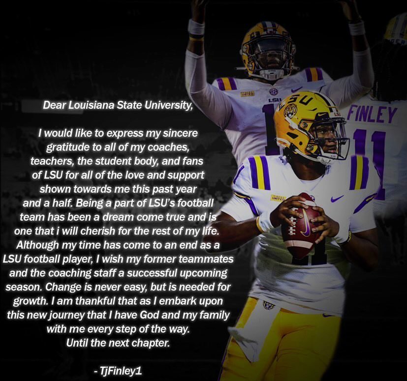 Wish him the best wherever he goes, unfortunate for him that he fell that far down on the LSU QB pecking order, below Nuss?? That’s rough.