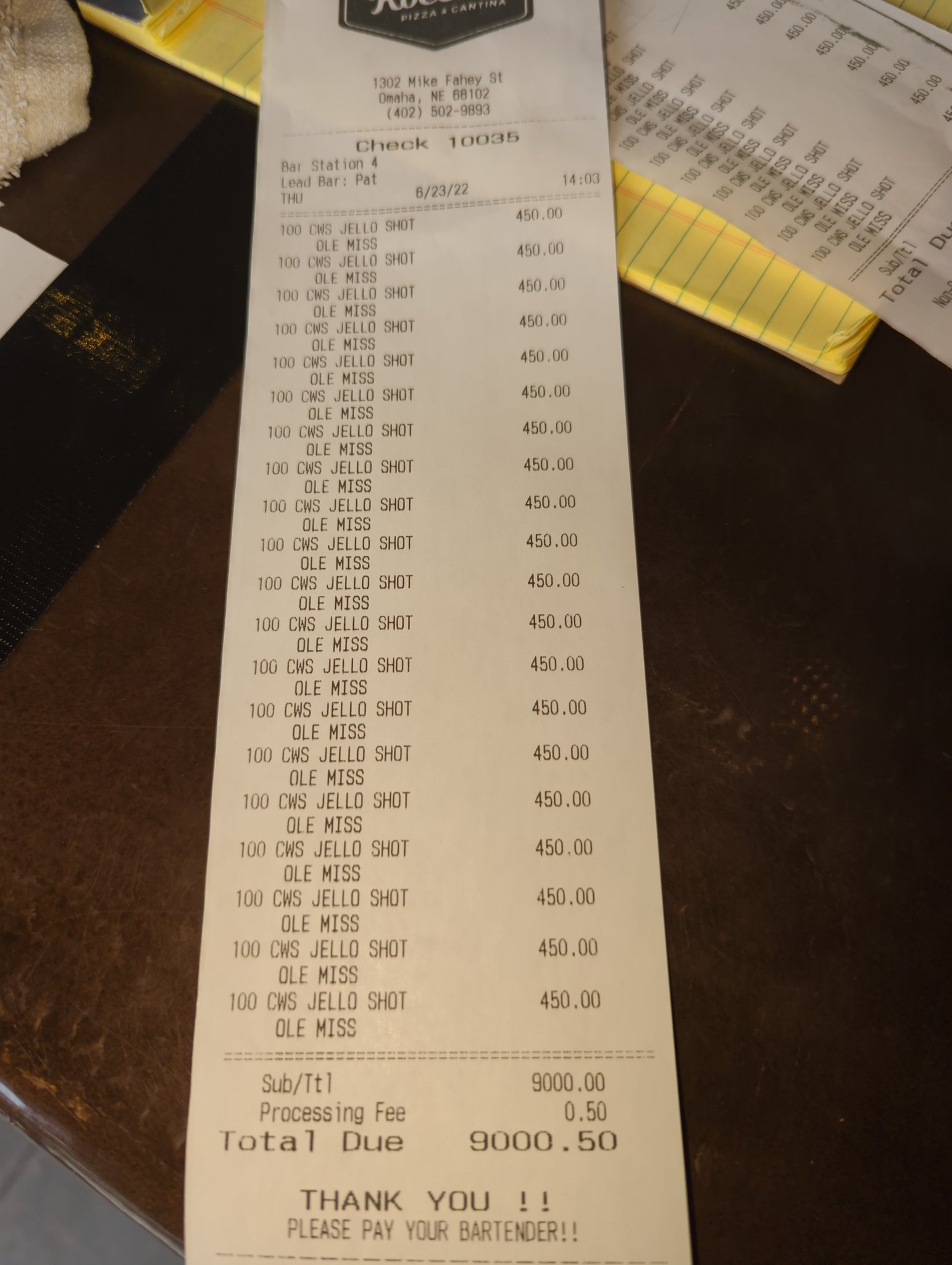 I called to buy some LSU shots over the phone and just have them give them out at the bar. The guy said that so many people want to do that where they had to set a minimum phone buy of 20 shots for 100 bucks.