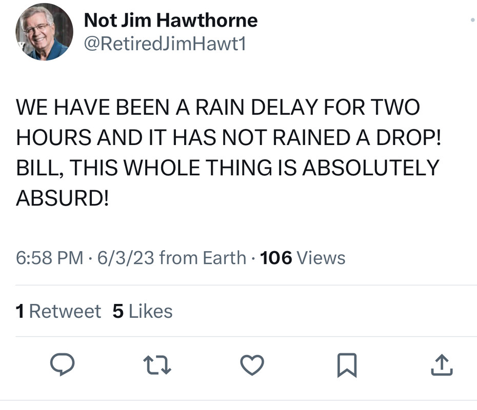 Waiting to start a game because rain might be coming in S. LA is a comical decision.