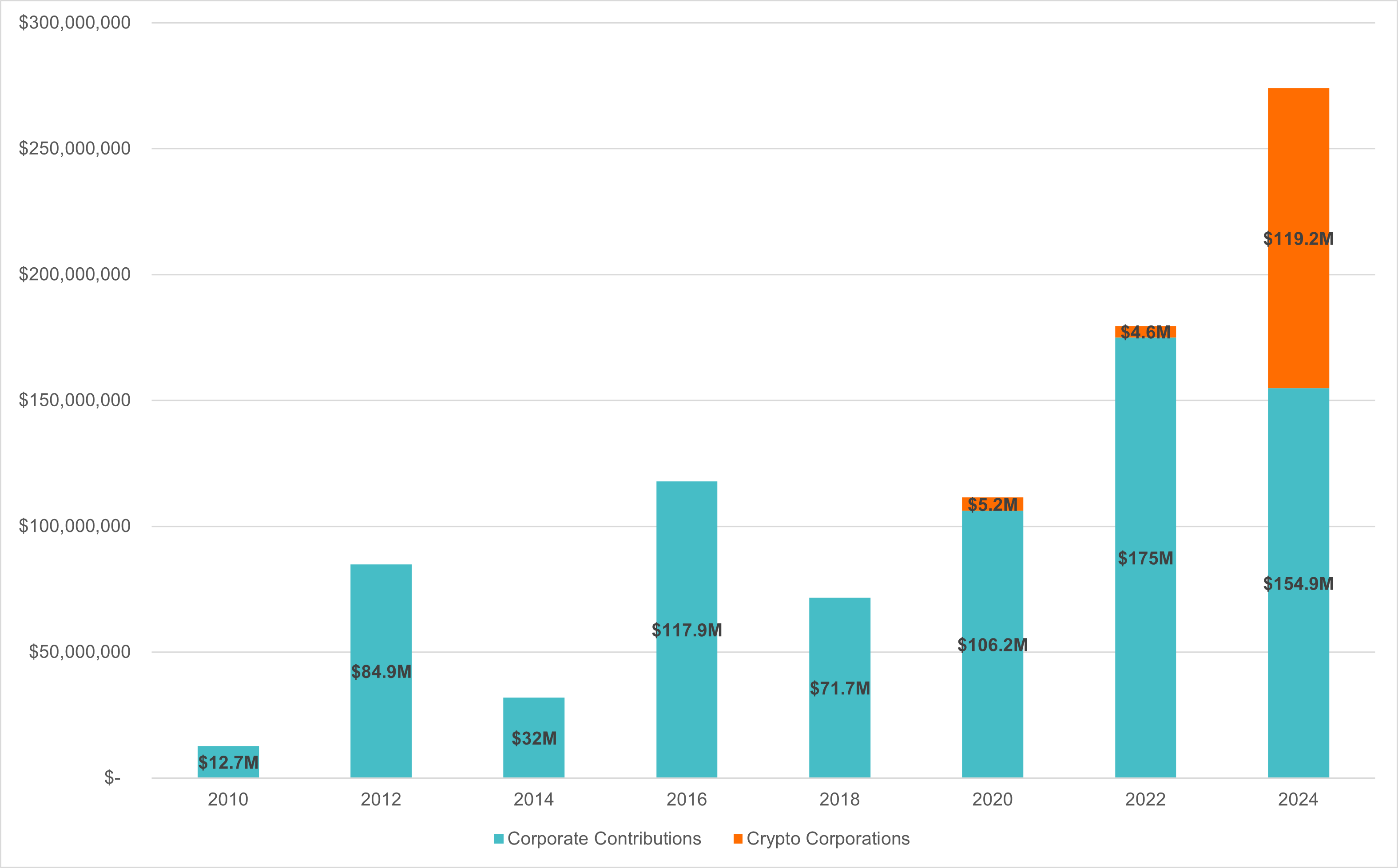 With the crypto companies shattering the norm of corporate reticence to make large-scale contributions to affect election outcomes, there’s a grave danger that other corporations will follow suit.