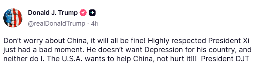 But WTF does crypto have to do with tariffs on China? Hell if anything it would seem you’d want to move money out of regular stocks and into crypto due to tariffs causing crypto to go up.
