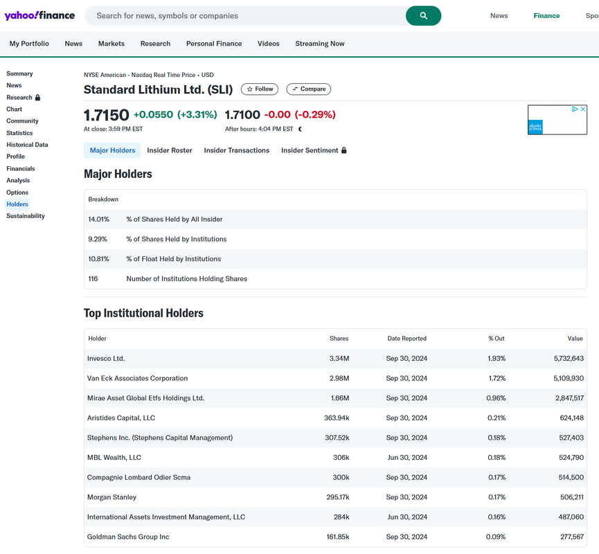 I saw that Koch did some restructuring this year and went from Koch Industries Inc to Koch Industries LLC. Not sure if this explains the apparent closing of Koch's SLI position or not, but I can't make sense of what I've seen on the subject other than no version of Koch shows up under Institutional Holders anymore. Anyone else?