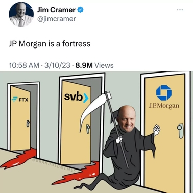 I get the inverse cramer joke, but every analyst in the world is gonna look dumb if you compare their bank takes in April 2022 to March 2023. There's much more ridiculous timings and picks of his that are hilariously wrong. This one is dumb.