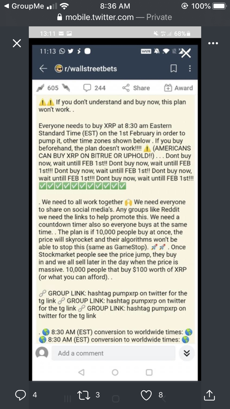 Of all the coins they pick to pump they pick fricking XRP and DOGE. I really want the WSB crew to stay away from crypto. They aren’t helpful