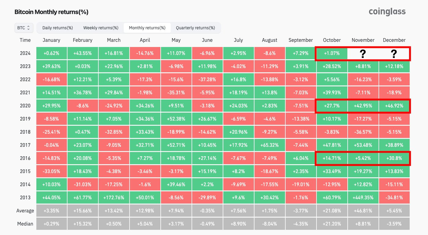 Bitcoin just closed it’s best September ever. As you can see from the chart above, Bitcoin saw a gain of 7.29%, surpassing 2016 when price rose 6.04% in the same month.