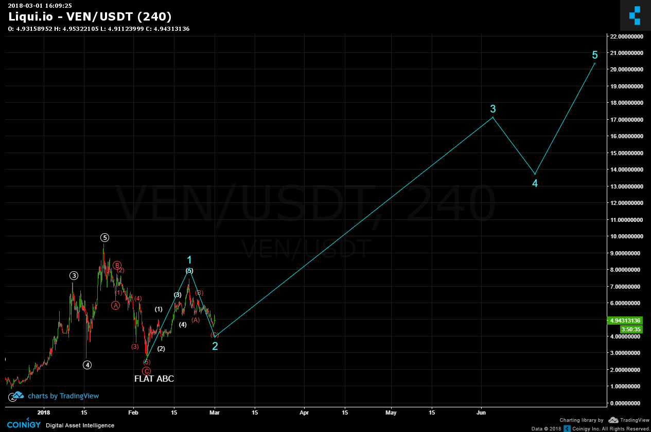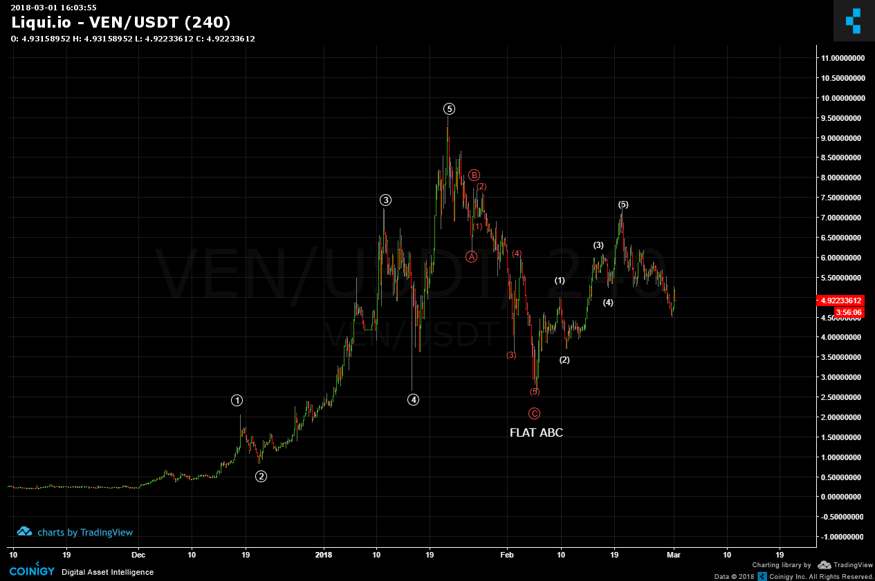 VEN placed a classical wave five up (circled white) followed by an abc flat correction.
