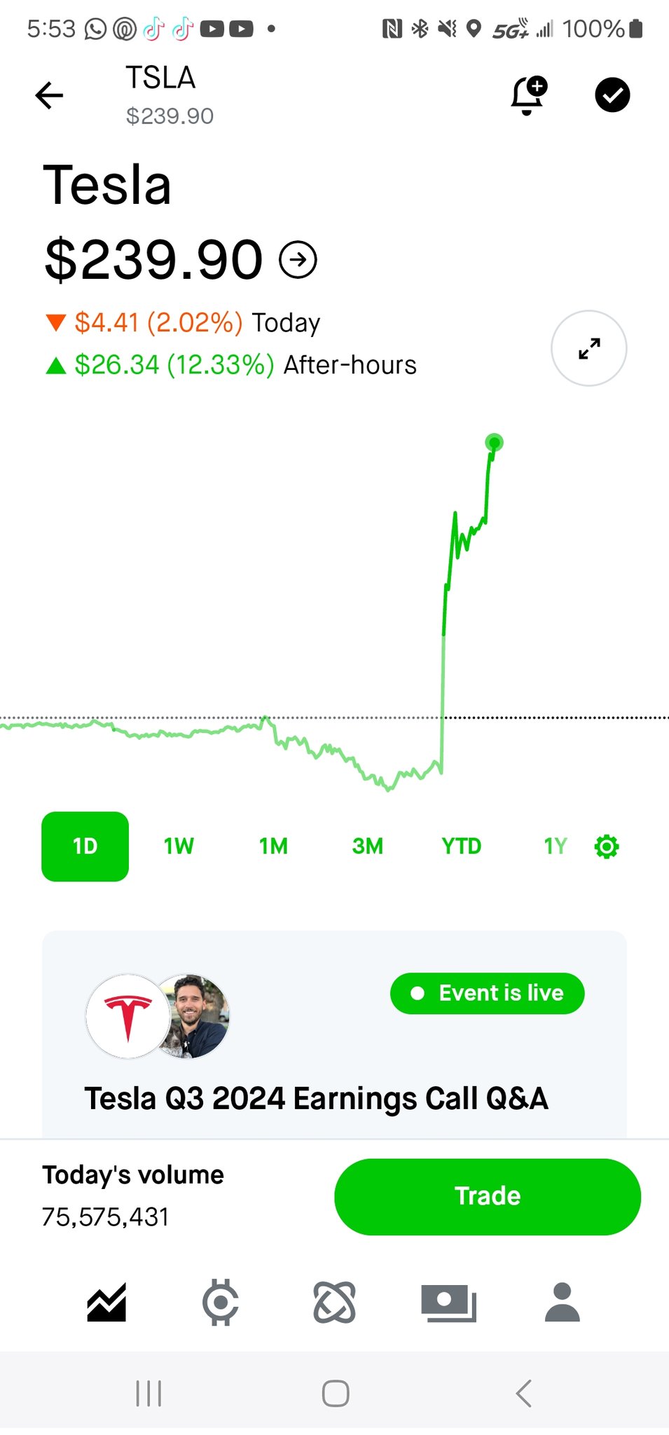 Tesla is up 18.5% as of right now. I don’t think that holds